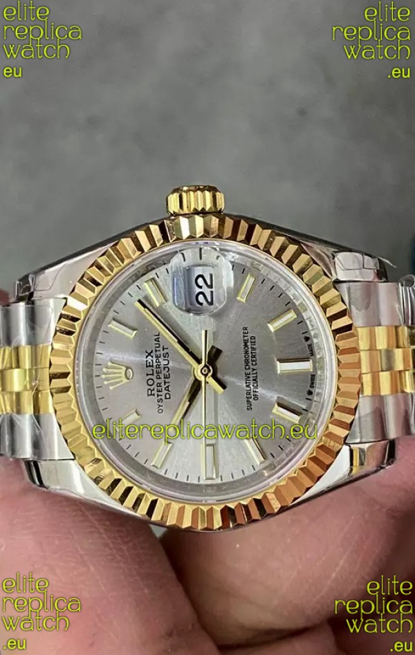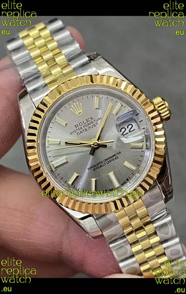 Rolex Datejust Super Clone Grey Dial 2 Tone Yellow Rose Gold Watch 28MM