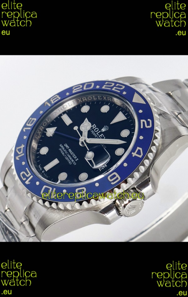 The Best Rolex GMT Model Replicated up to Date. The First Rolex model to adopt a 904L Steel on Casing and Strap which is the same steel used by Rolex.