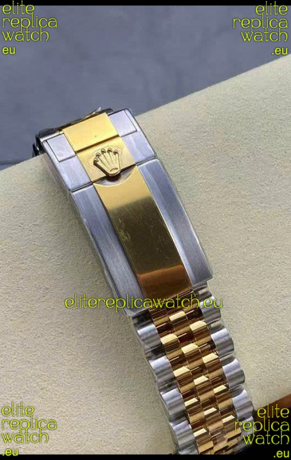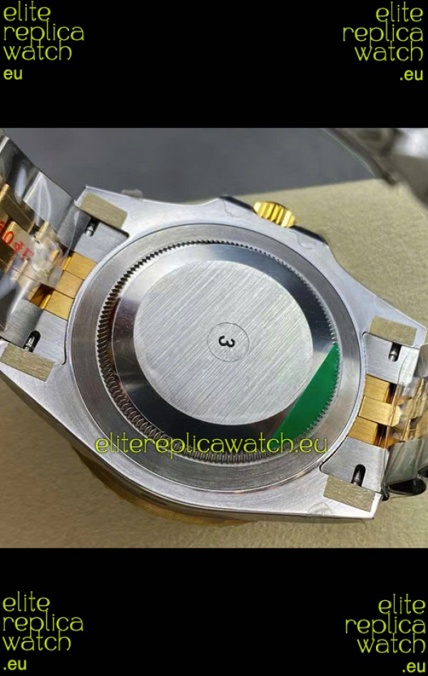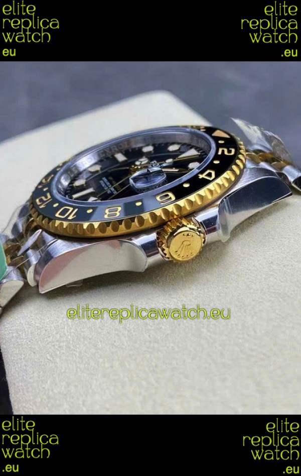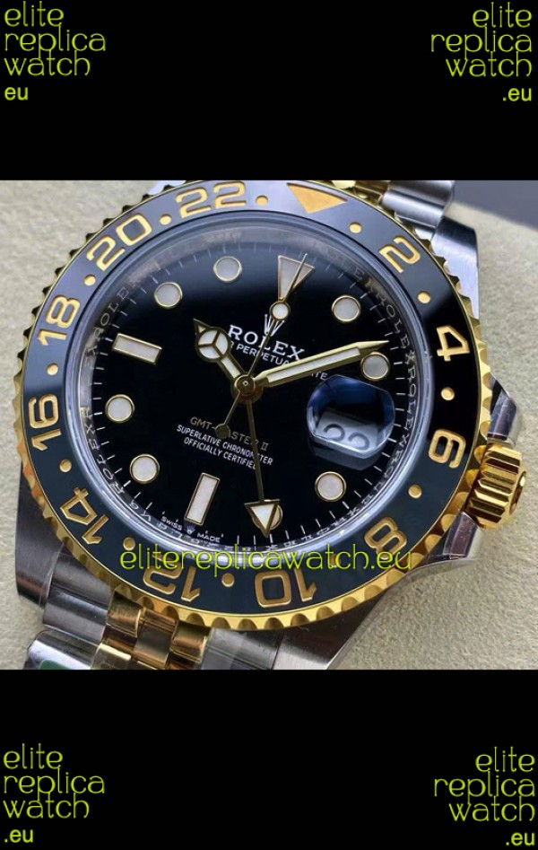 Two Tone Yellow Gold Plating 904L Stainless Steel Case as per the Orginal with Metallic Black/Blue Ceramic Inserts.