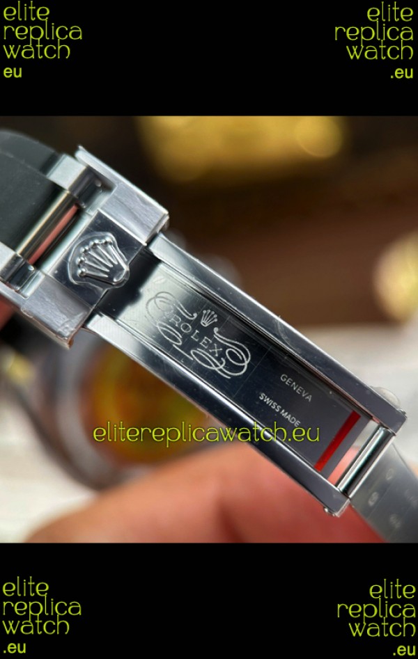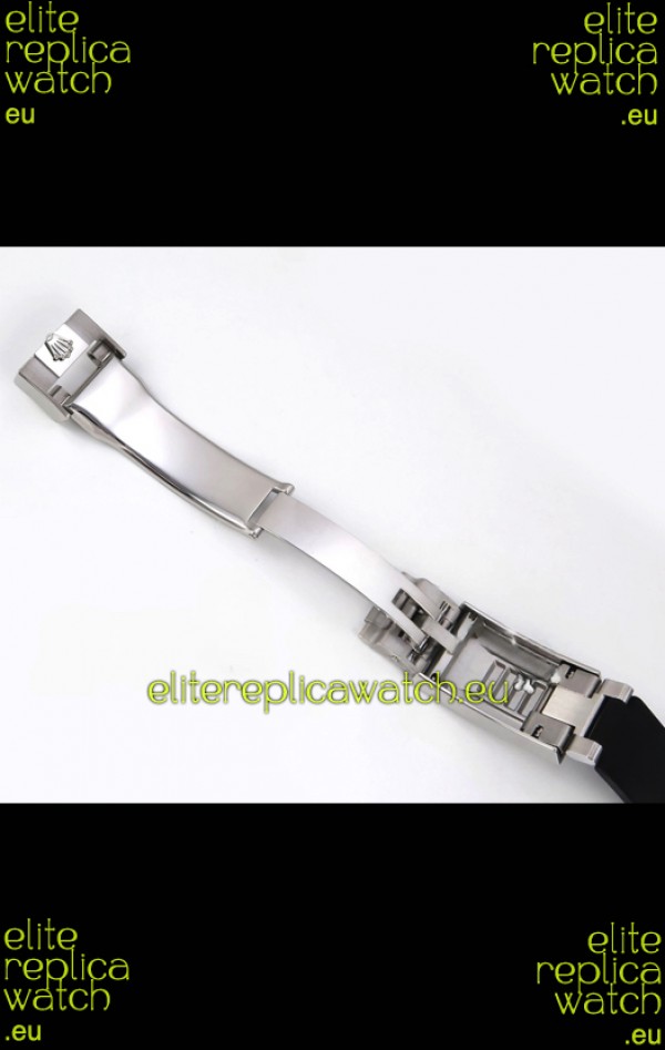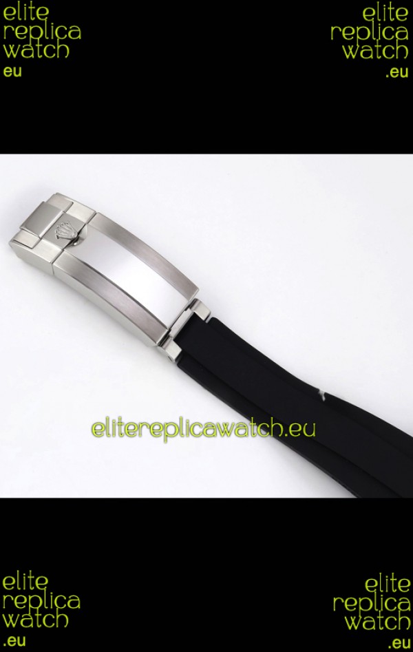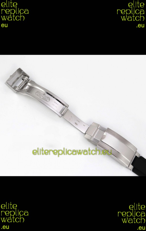 Genuine Oyster Flex Rubber Strap with New style Flip-Lock Perfectly Replicated Clasp Complete with Rolex Markings and Engravings as per the Genuine
