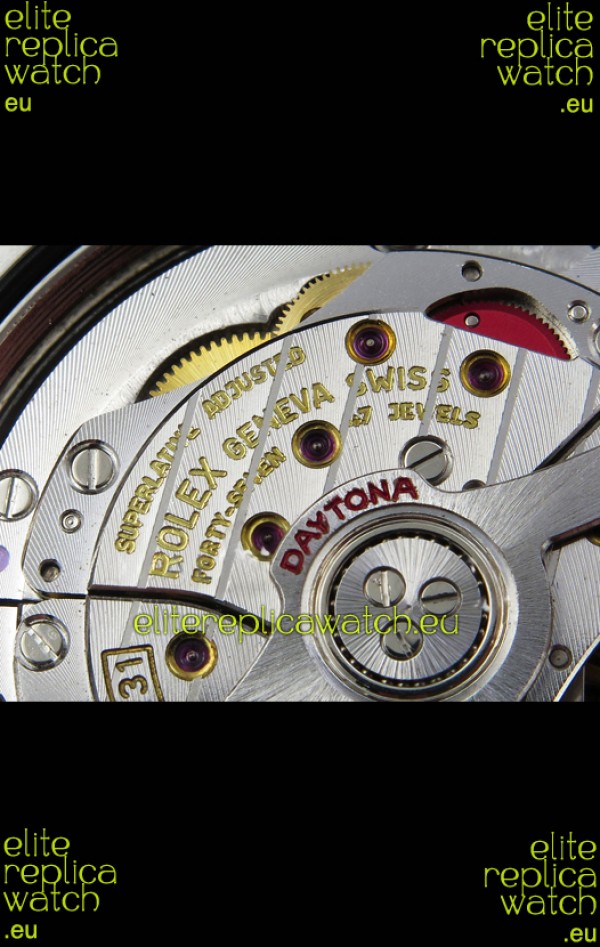 Genuine Cal.4131 Movement built from Scratch with no modifications, Platinum Plating on Rotors and Plates as per the original. The Same movement you find in Rolex Daytona Watches