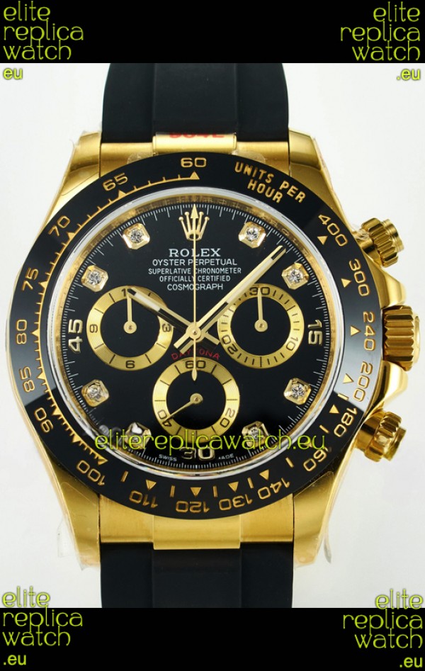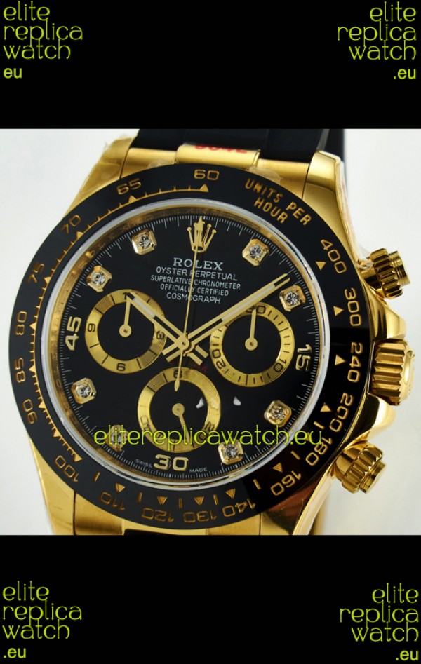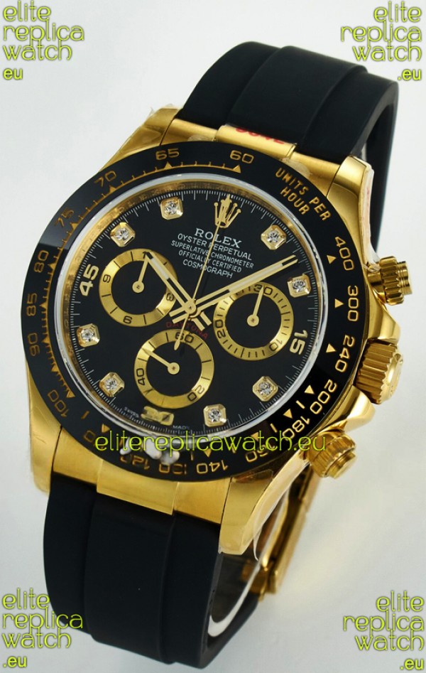 Rolex Daytona Super Clone 116518 Yellow Gold Black Dial Original Cal.4130 Movement