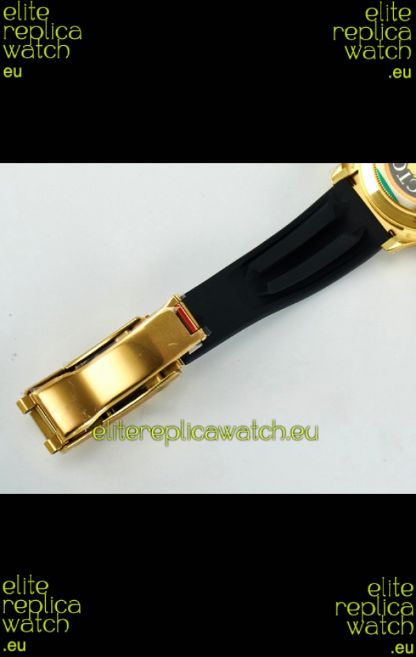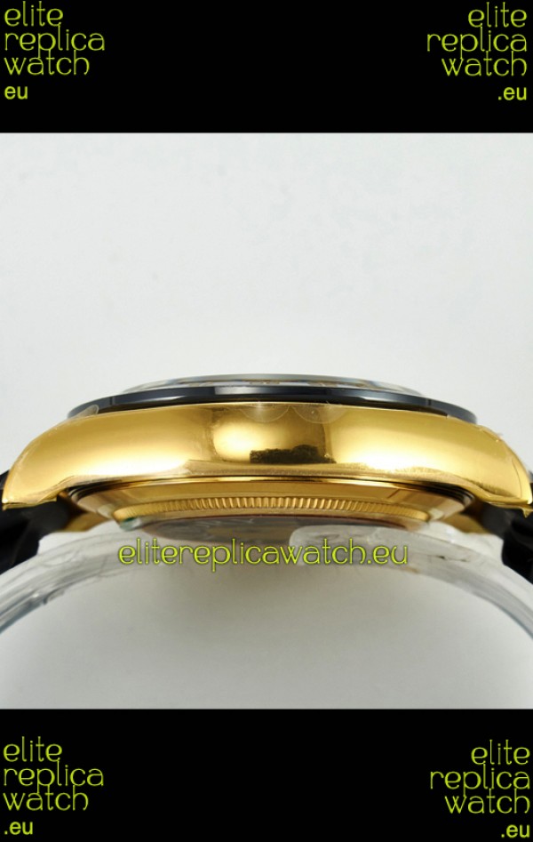Yellow Gold Plating on 904 Solid Stainless Case with Rolex Markings and Engravings like the Authentic.