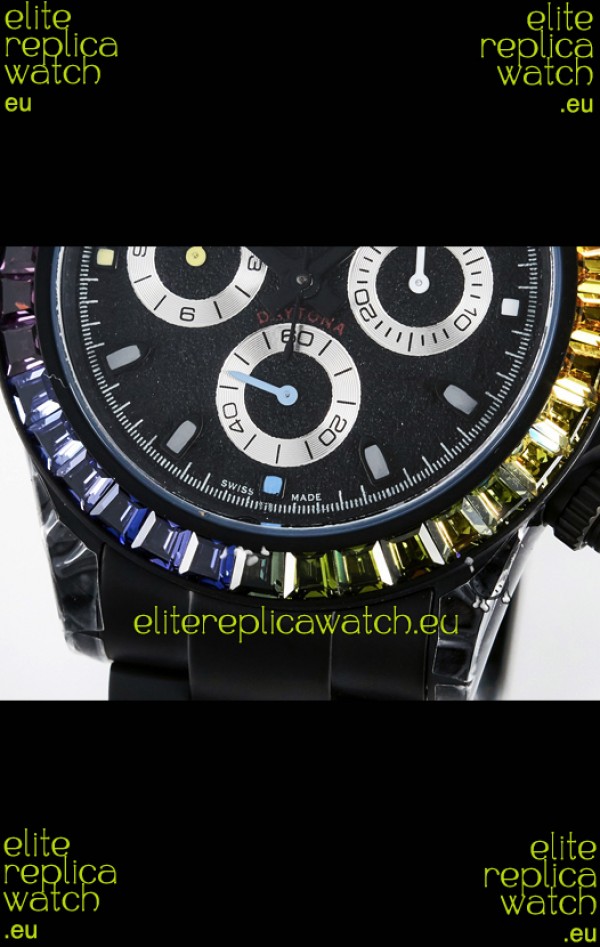 The Best Rolex Daytona Model Replicated up to Date. The First Rolex model to adopt a 904L Steel on Casing and Strap which is the same steel used by Rolex. Compared with an Original Side by Side and there were NO Differences Whatsoever. Complete list of details have been stated below and you will see that tremendous amount of detaiing and work has been put into this edition.