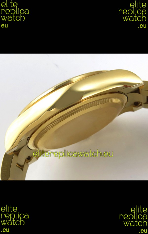 Yellow Gold Plating on 904 Solid Stainless Case with Rolex Markings and Engravings like the Authentic.