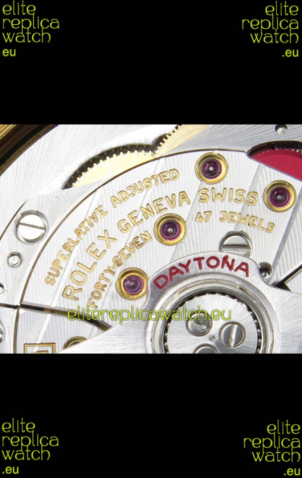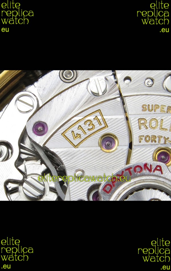 Genuine Cal.4131 Movement built from Scratch with no modifications, Platinum Plating on Rotors and Plates as per the original. The Same movement you find in Rolex Daytona Watches