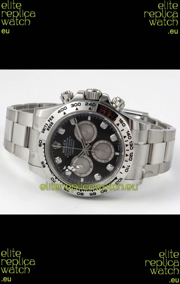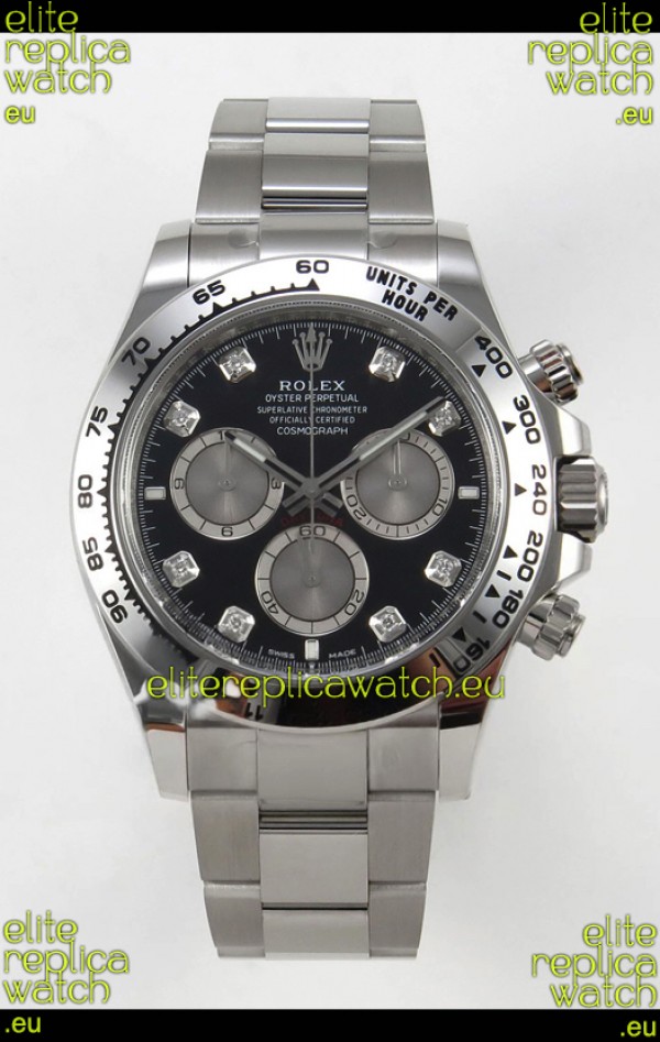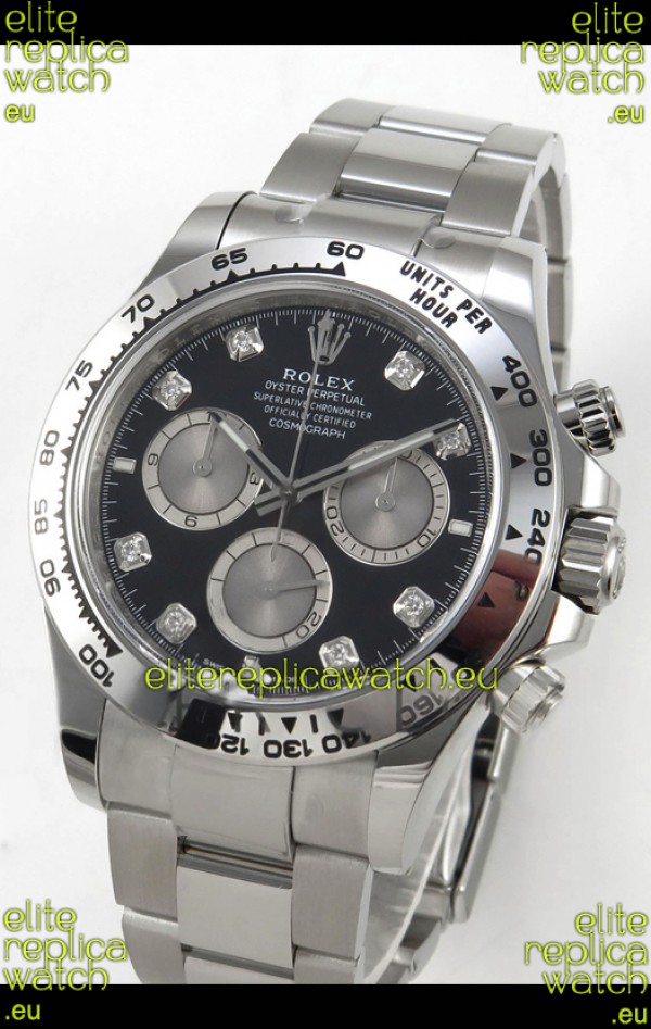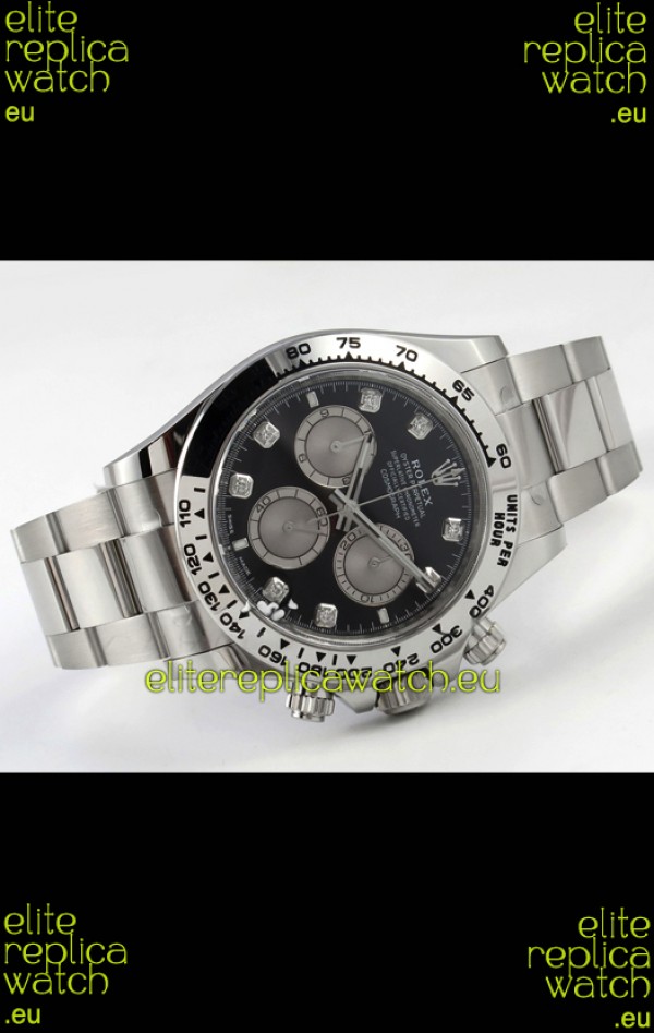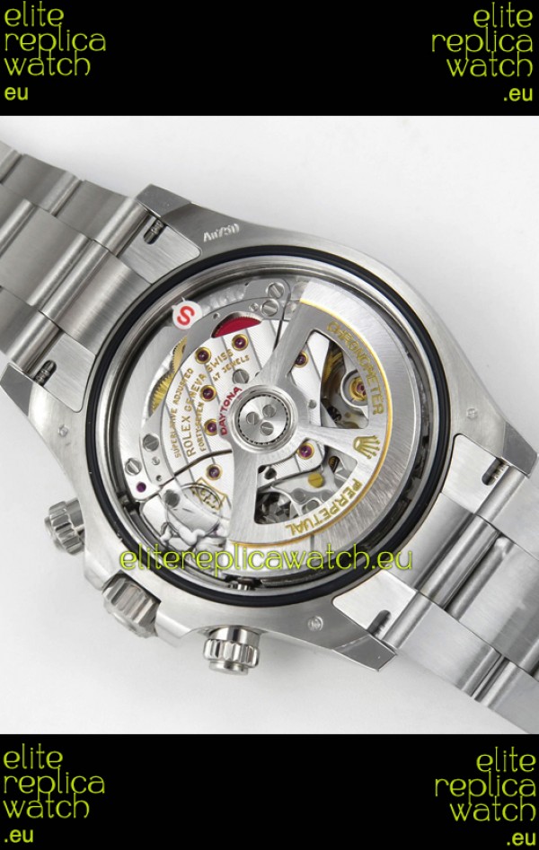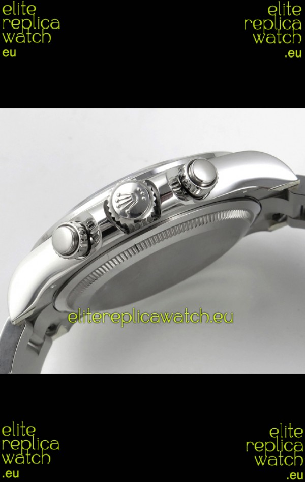 The Best Rolex Daytona Model Replicated up to Date. The First Rolex model to adopt a 904L Steel on Casing and Strap which is the same steel used by Rolex. Compared with an Original Side by Side and there were NO Differences Whatsoever. Complete list of details have been stated below and you will see that tremendous amount of detaiing and work has been put into this edition.