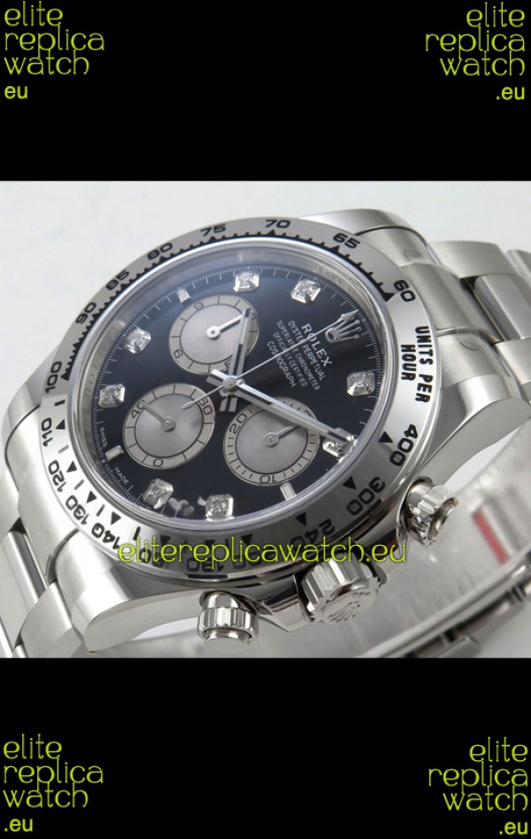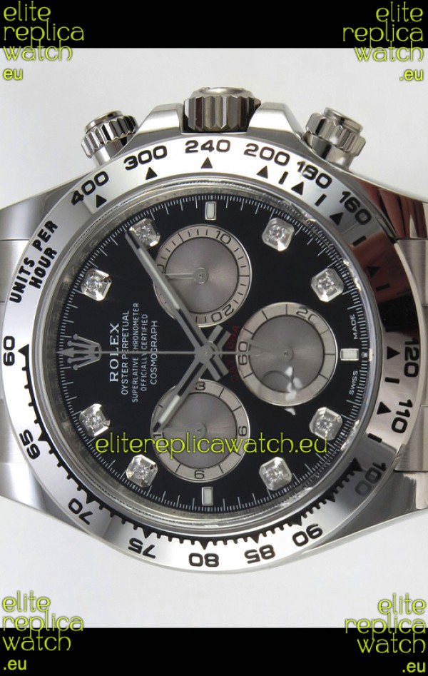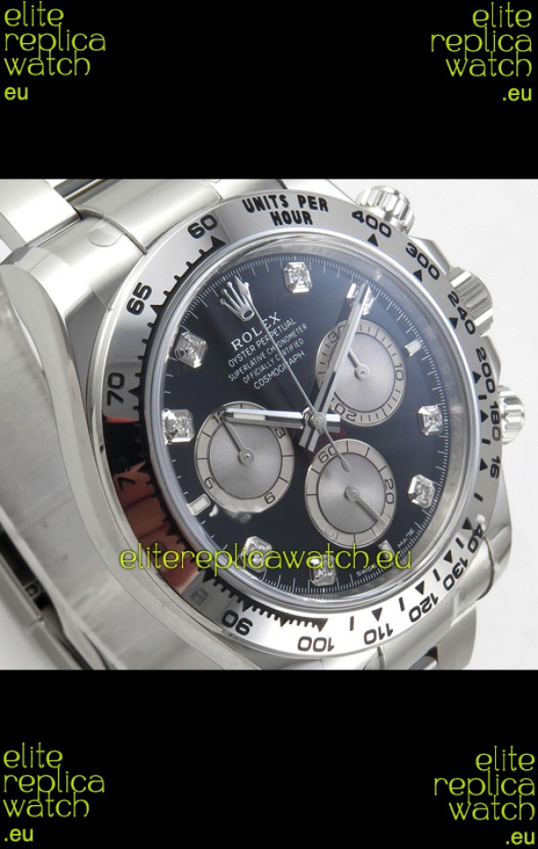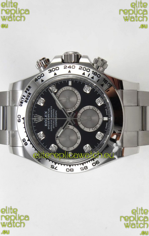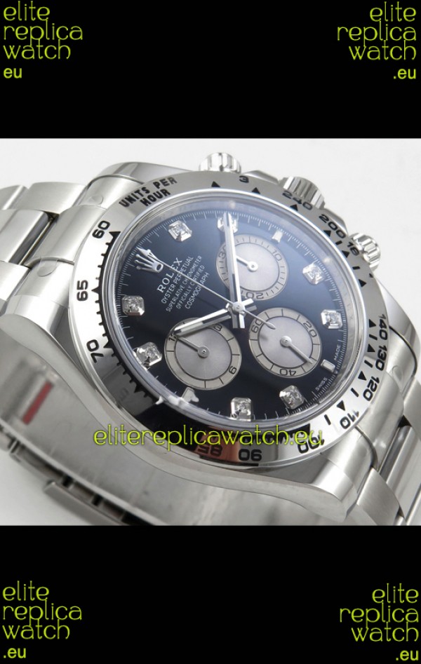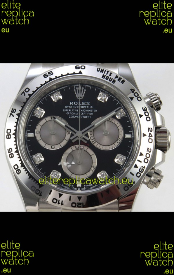 The Best Rolex Daytona Model Replicated up to Date. The First Rolex model to adopt a 904L Steel on Casing and Strap which is the same steel used by Rolex. Compared with an Original Side by Side and there were NO Differences Whatsoever. Complete list of details have been stated below and you will see that tremendous amount of detaiing and work has been put into this edition.