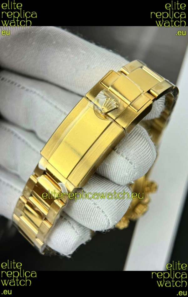 18K Yellow Gold Plating on 904 Solid Stainless Case with Rolex Markings and Engravings like the Authentic.