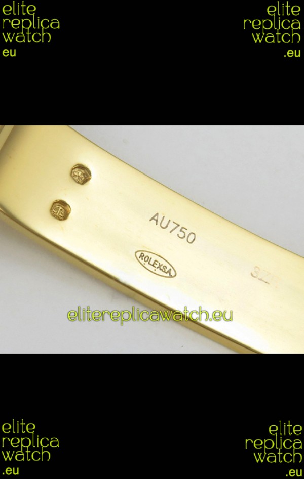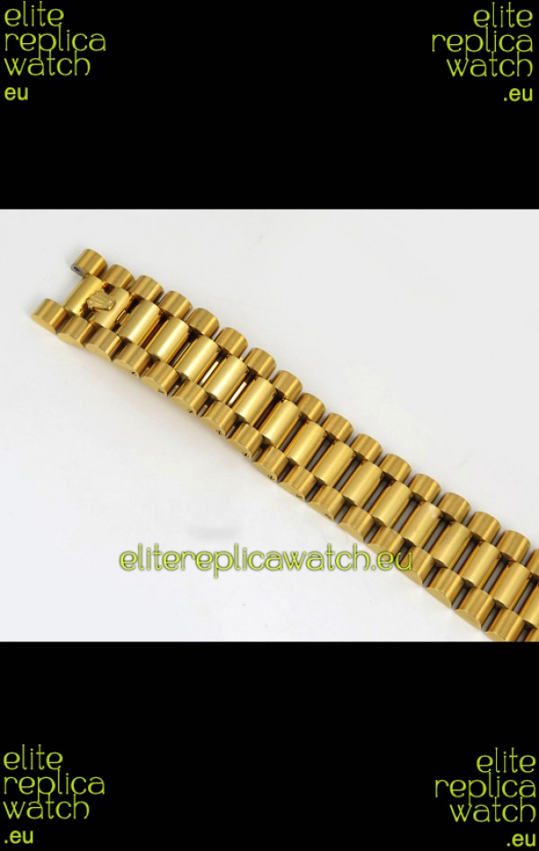 18K Yellow Gold Plating on 904L Stainless Steel New Design President Strap with Folding Clasps complete with Rolex Markings and Engravings