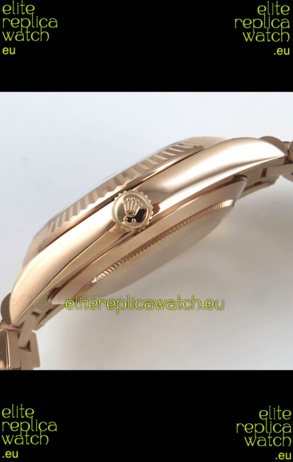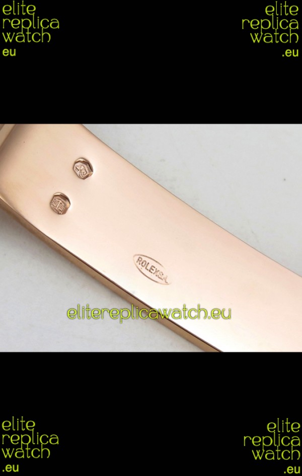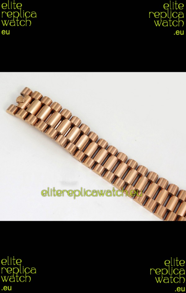 18K Rose Gold Plating on 904L Stainless Steel New Design President Strap with Folding Clasps complete with Rolex Markings and Engravings