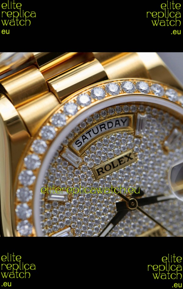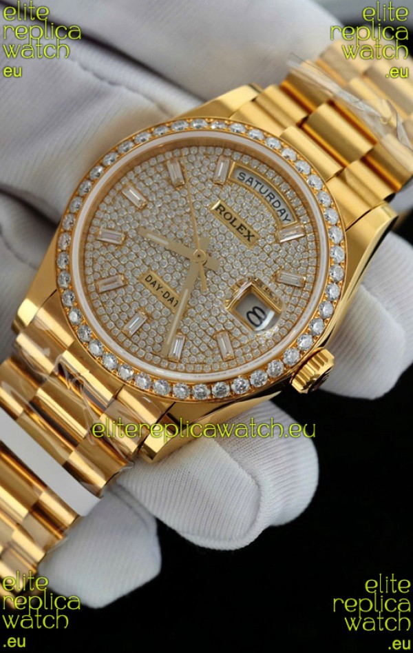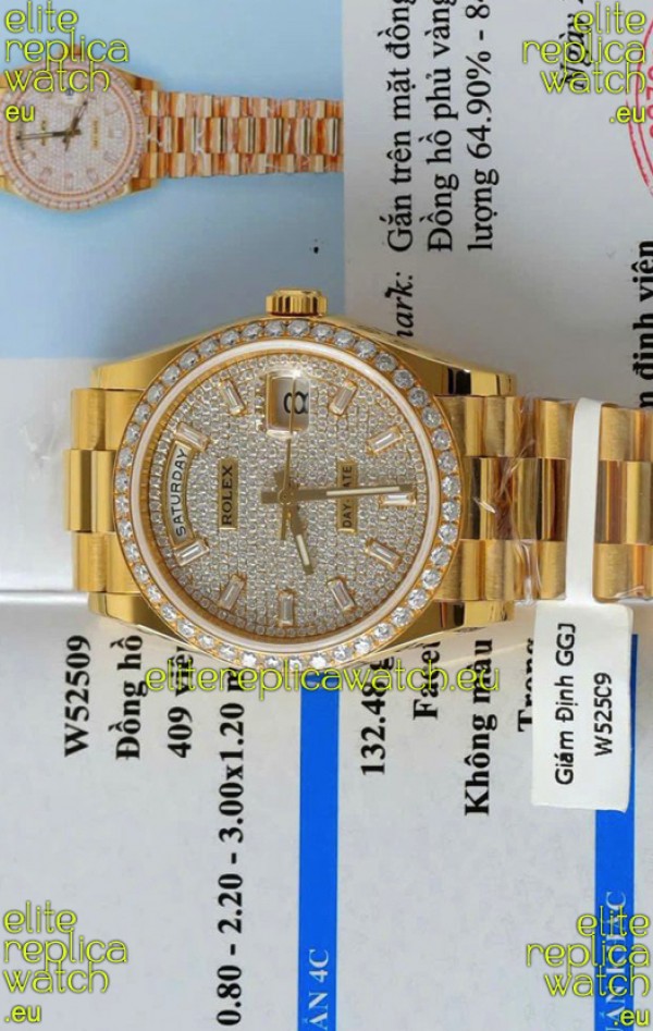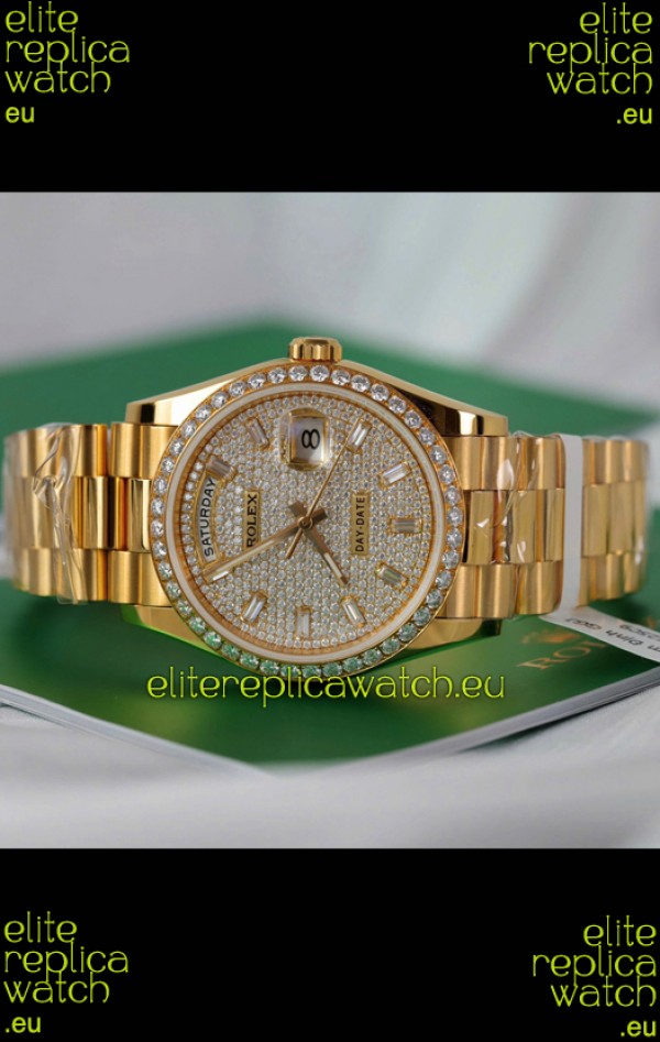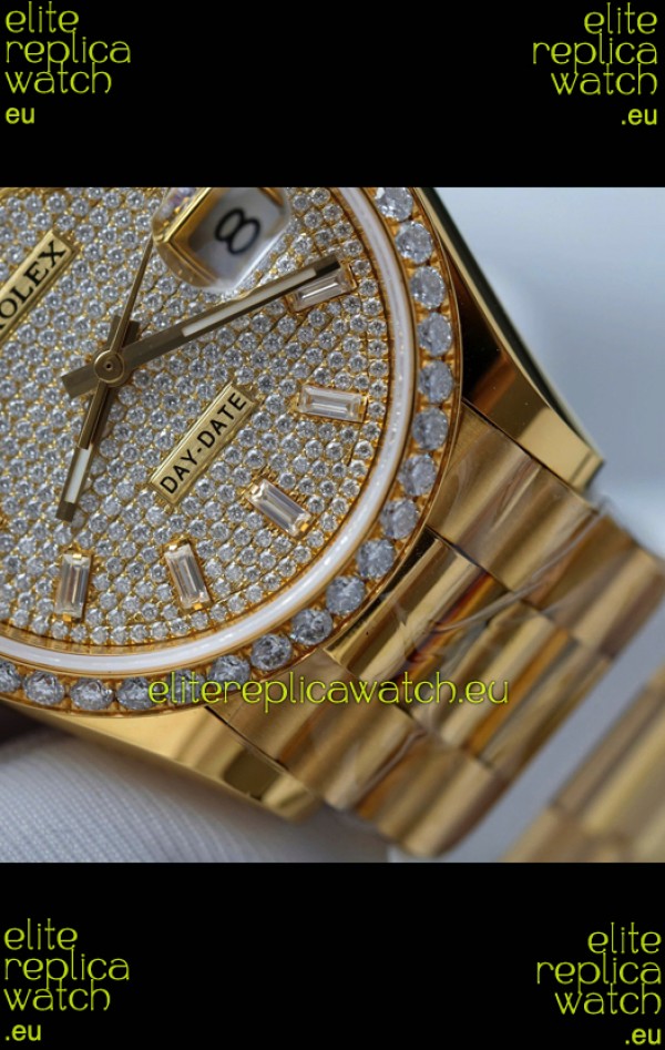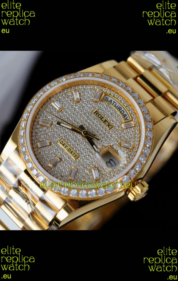 Rolex Day Date Super Clone Yelllow Gold Plated Custom Modified Diamonds Paved Watch