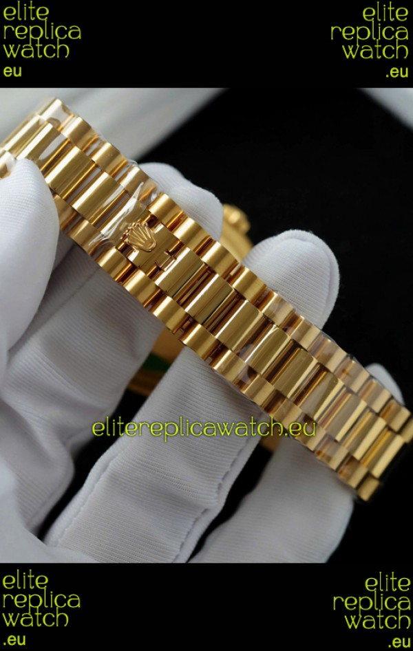 18K Yellow Gold Plating on 904L Stainless Steel New Design President Strap with Folding Clasps complete with Rolex Markings and Engravings
