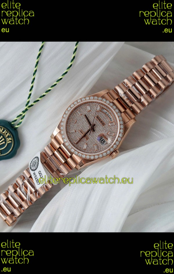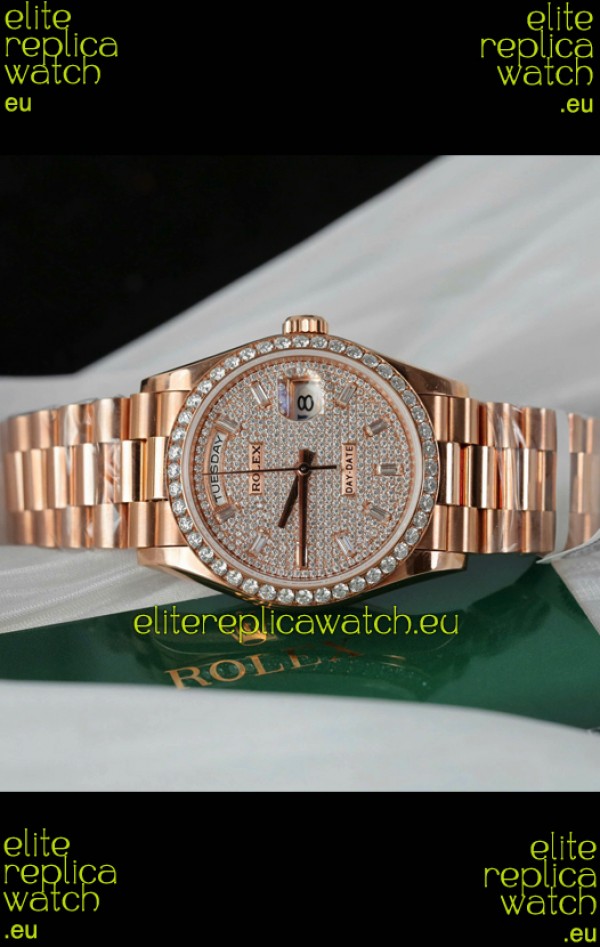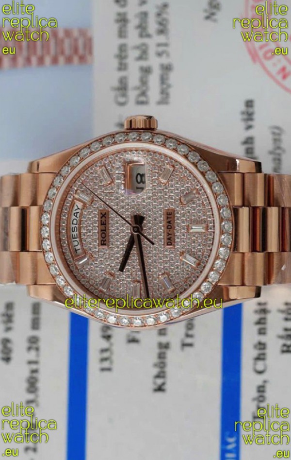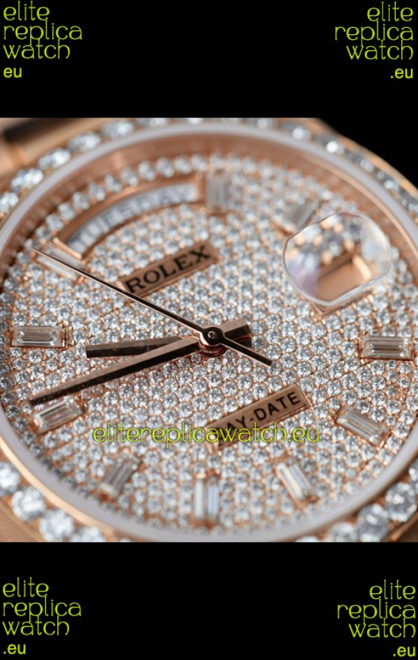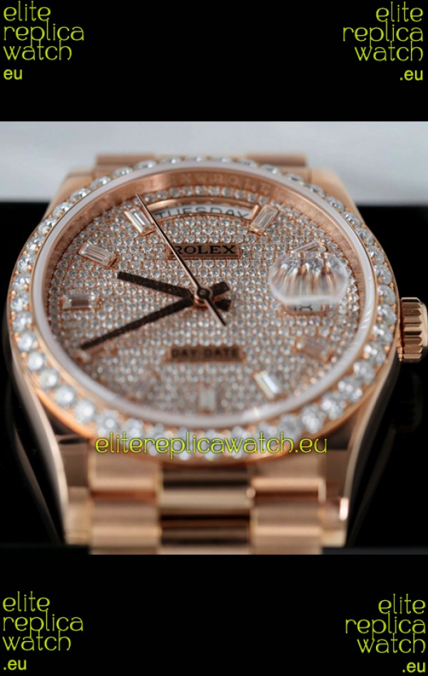 Rolex Day Date Super Clone Rose Gold Plated Custom Modified Diamonds Paved Watch