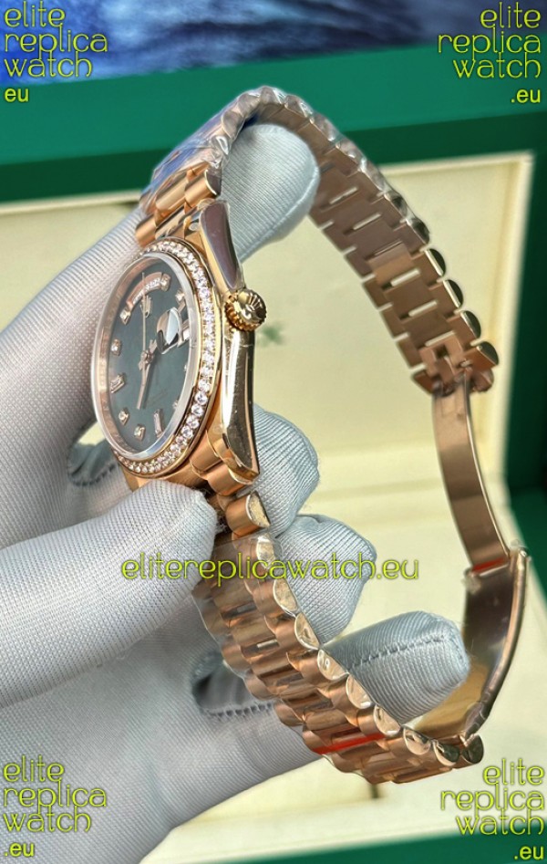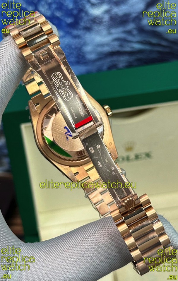 18K Rose Gold Plating on 904L Stainless Steel New Design President Strap with Folding Clasps complete with Rolex Markings and Engravings