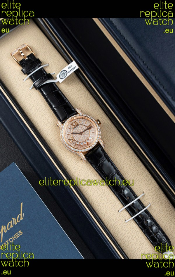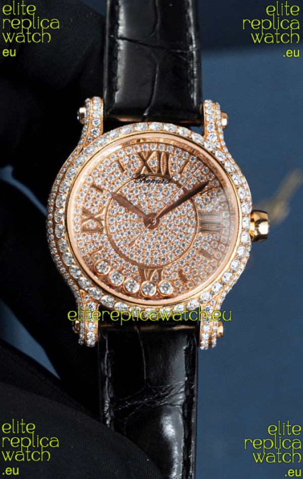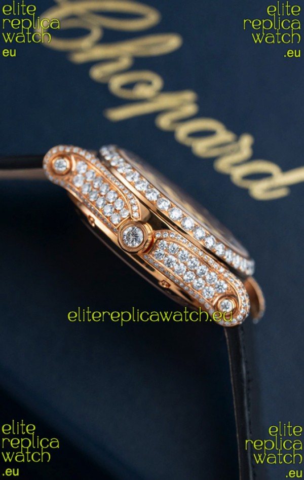 18K Rose Gold Plating on 904L Stainless Steel Casing with complete with Chopard Markings as per the Originals.