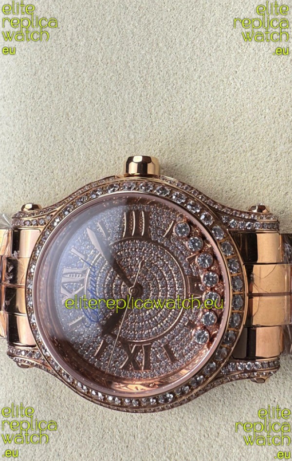 Chopard Happy Sport Super Clone Automatic Watch 36MM in Rose Gold Casing Mossanites Dial