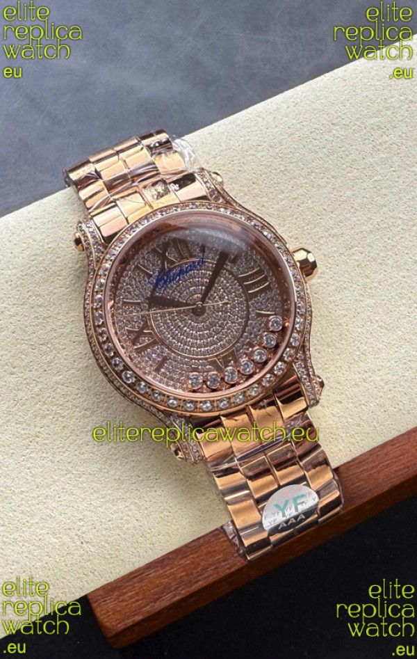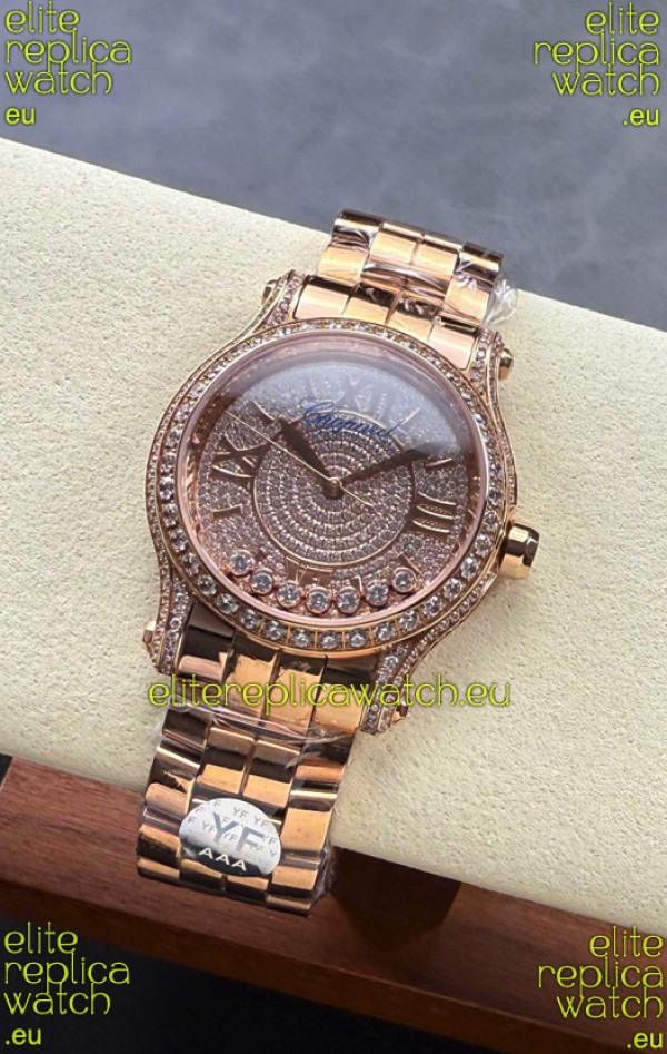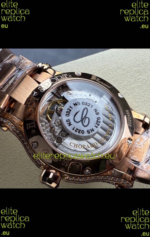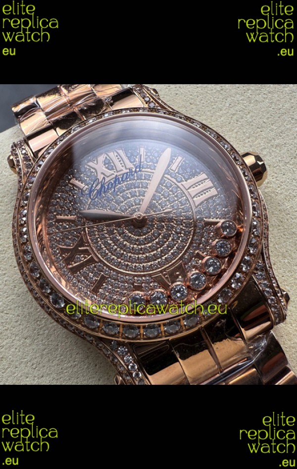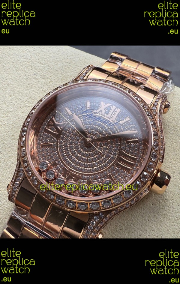 Chopard Happy Sport 1:1 Mirror Swiss Automatic Replica Watch 36MM in Rose Gold Casing Mossanites Dial