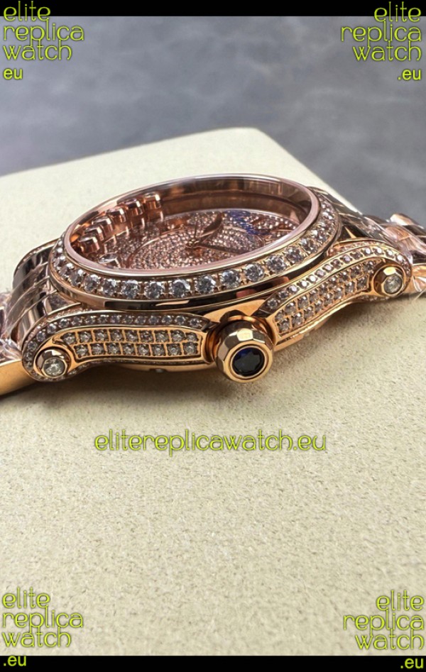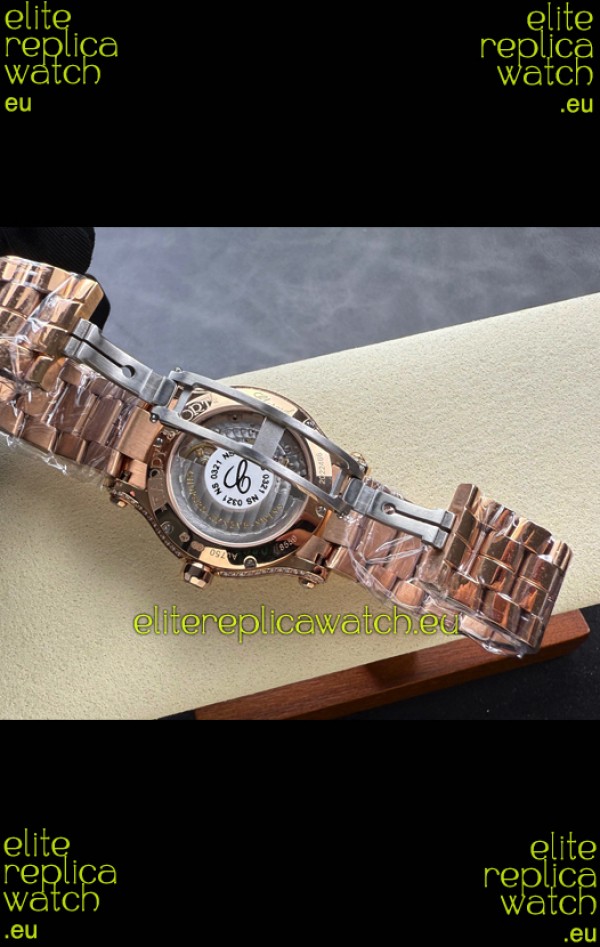 Mossanites Paved Dial with Rose Gold Roman Hour Numerals and Date Window at 4 O'Clock, Signature Floating Diamonds on Dial