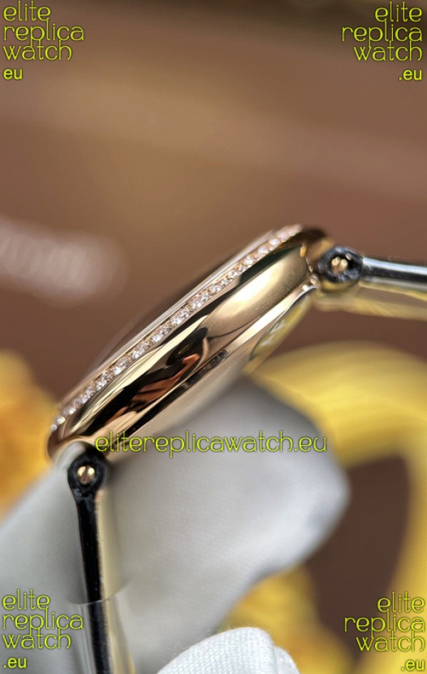 18K Rose Gold Plating on 904L Stainless Steel Casing. Swiss Cut Diamonds Bezel
