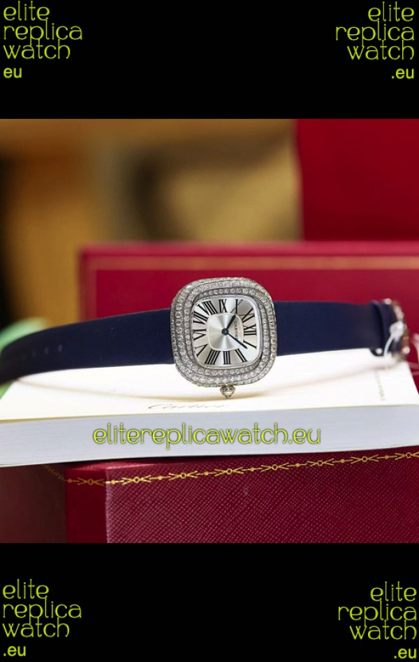 Coussin De Cartier Steel Watch Swiss Replica Watch Blue Strap