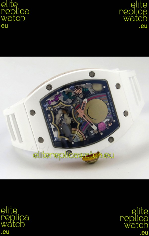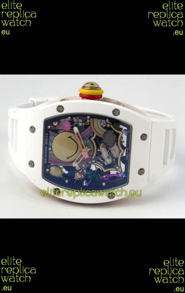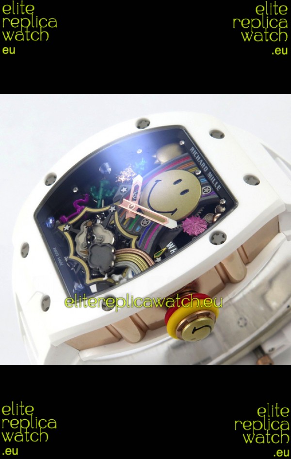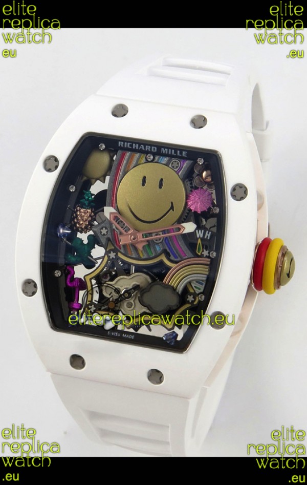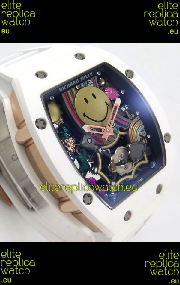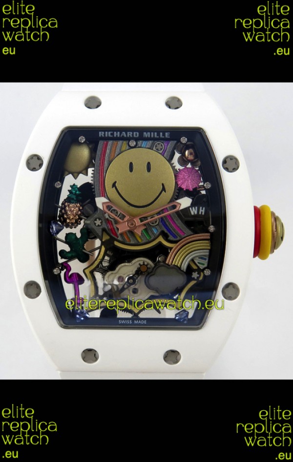 Richard Mille Super Clone RM088 Smiley Tourbillon White Ceramic Rubber Strap Watch