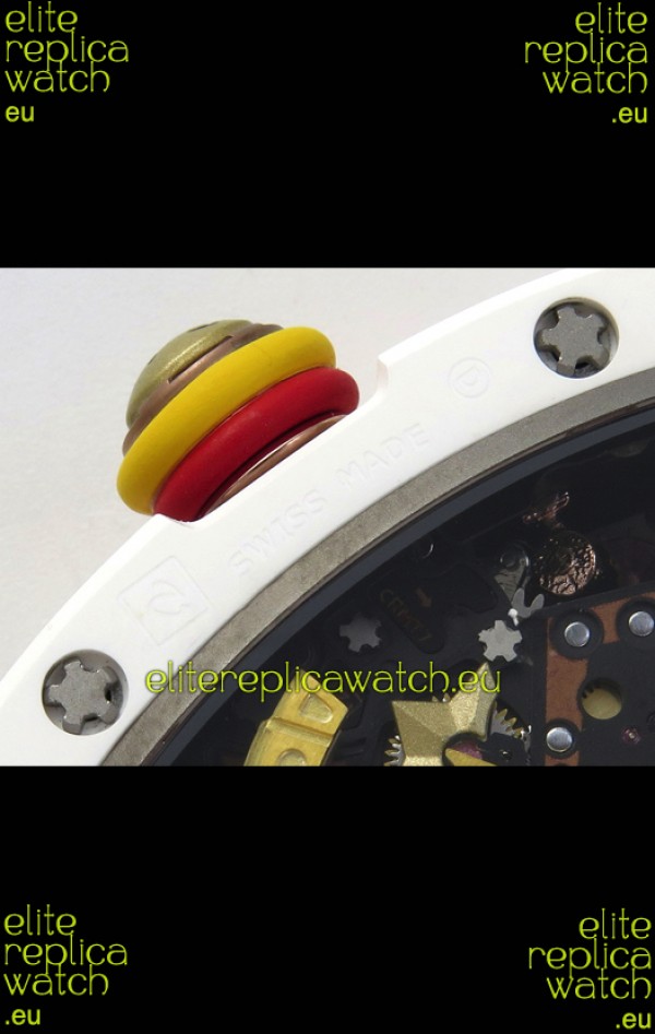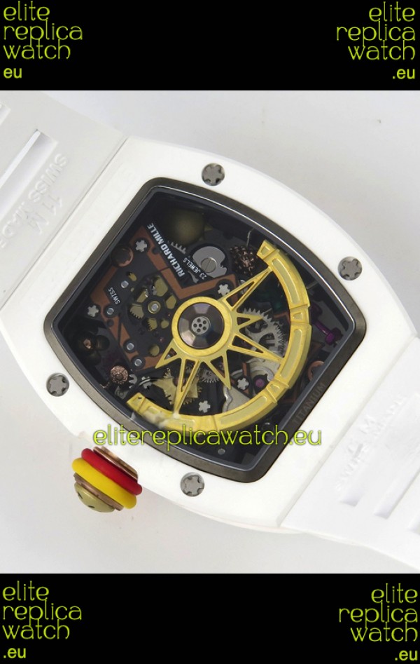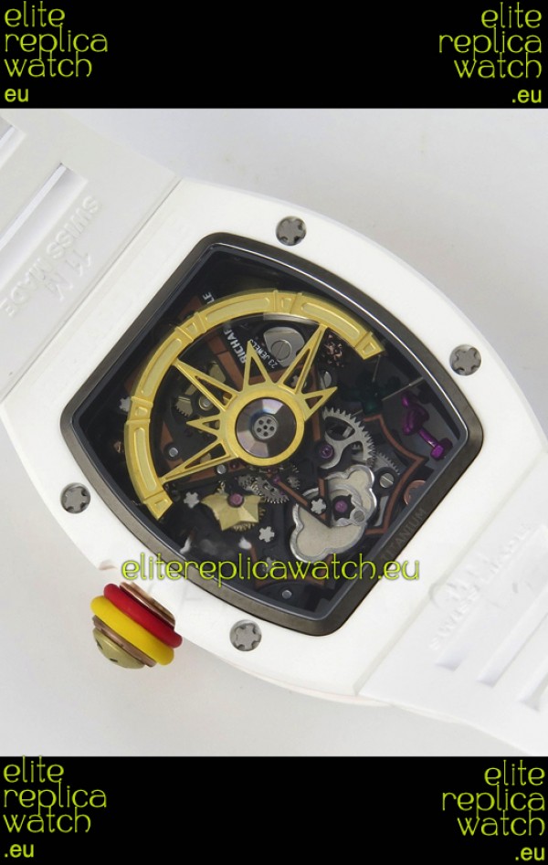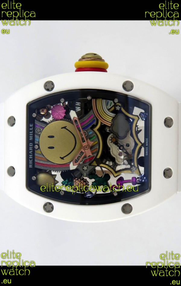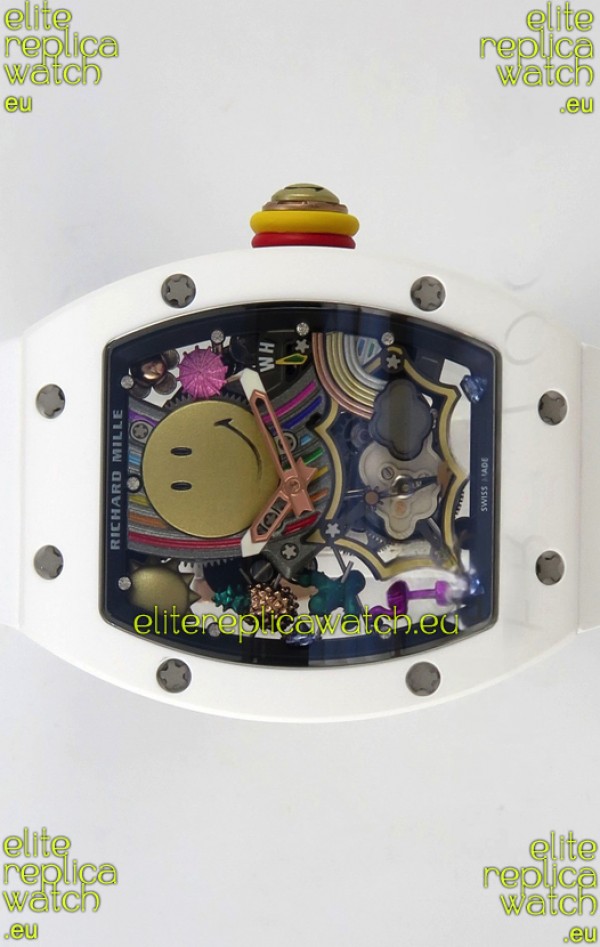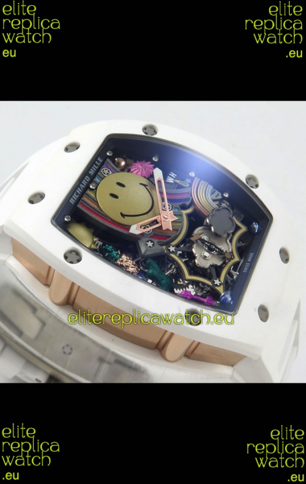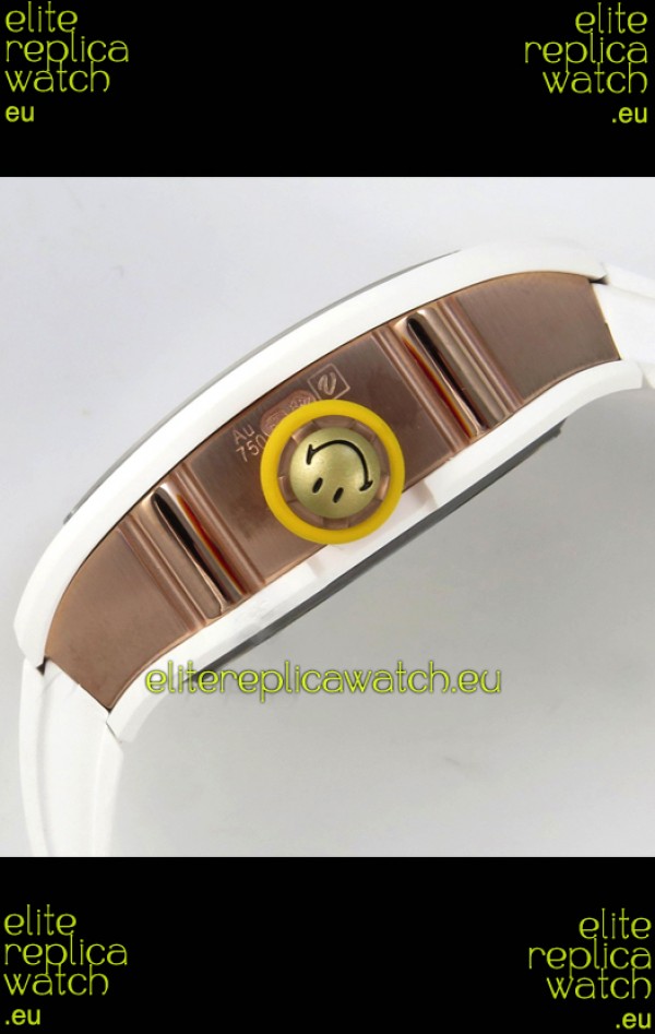 Richard Mille Super Clone RM088 Smiley Tourbillon White Ceramic Rubber Strap Watch
