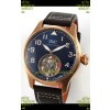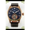 IWC Super Clone Portugese Hand-Wound Genuine Tourbillon Blue Dial Rose Gold Casing Watch