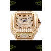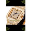 Cartier "Santos De Cartier" Yellow Gold W/ Diamonds Arabic Dial 1:1 Mirror Replica - 40MM - Genuine Diamonds