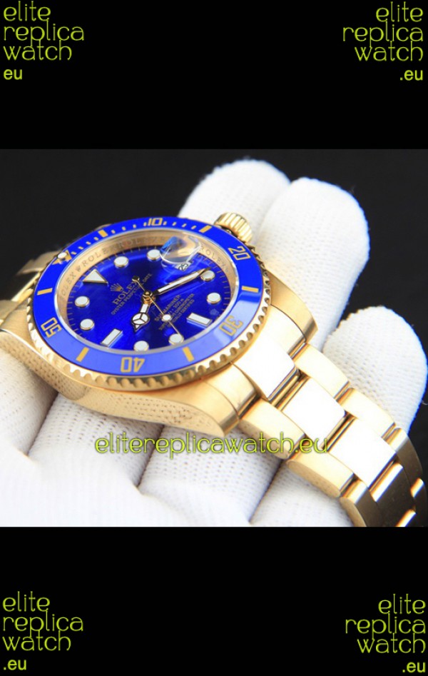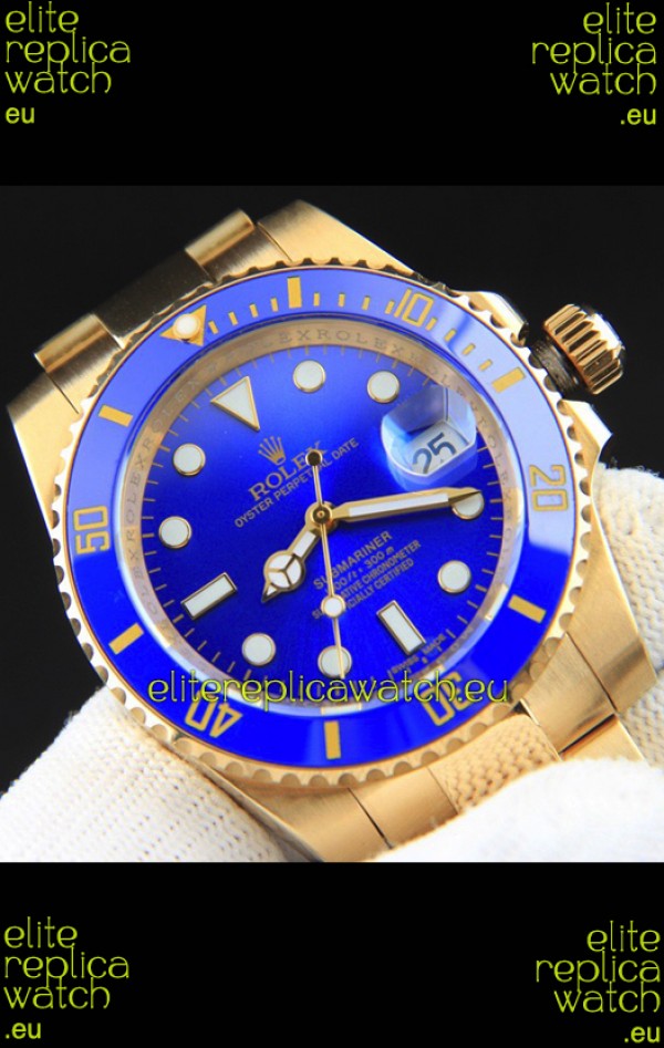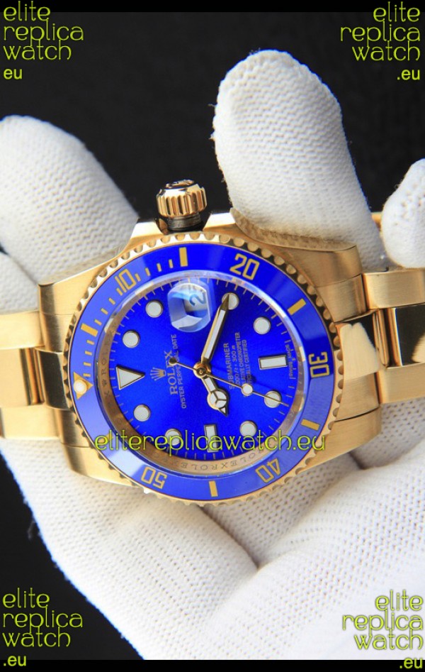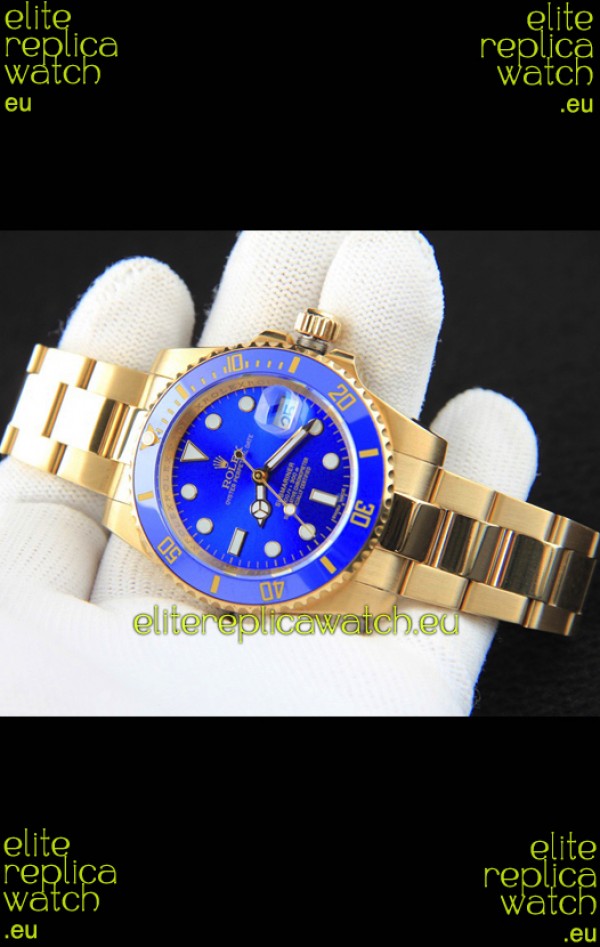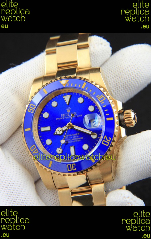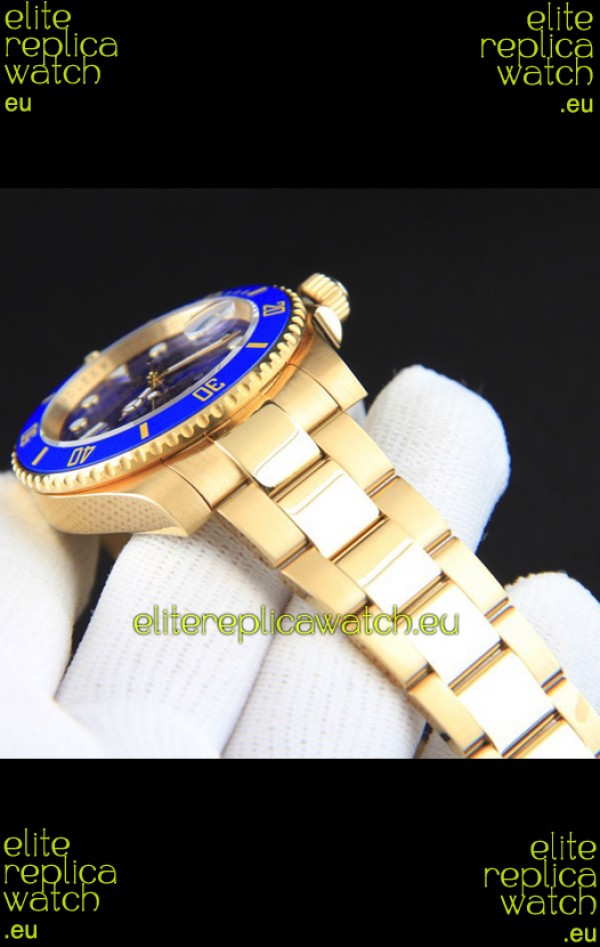 Rolex Submariner Japanese Replica Watch in Yellow Gold Casing Blue Dial