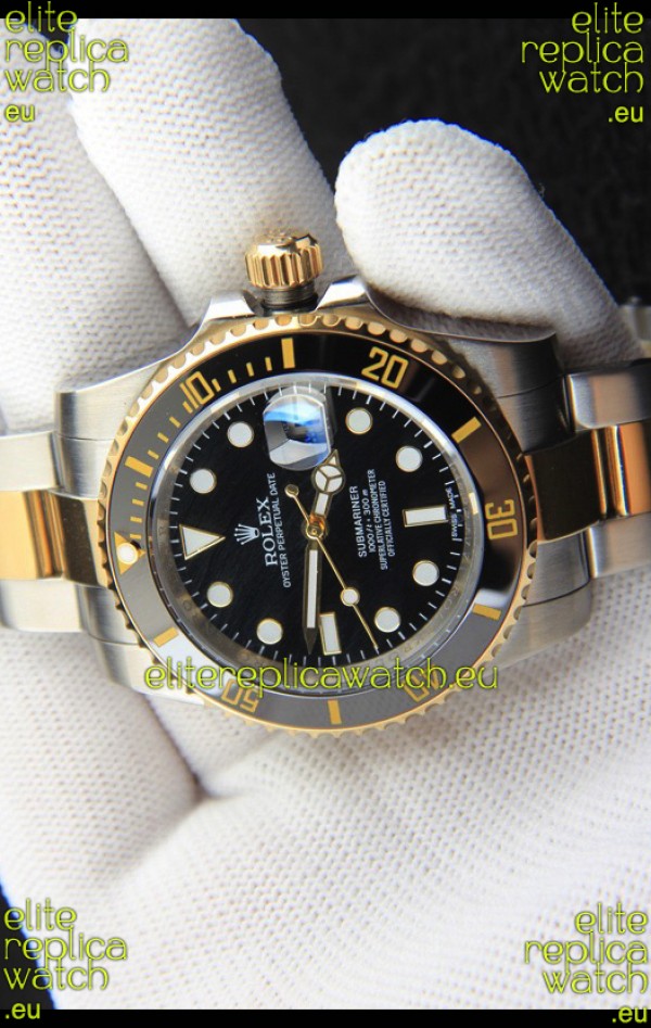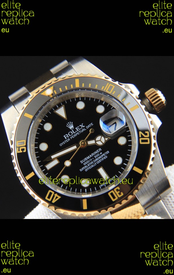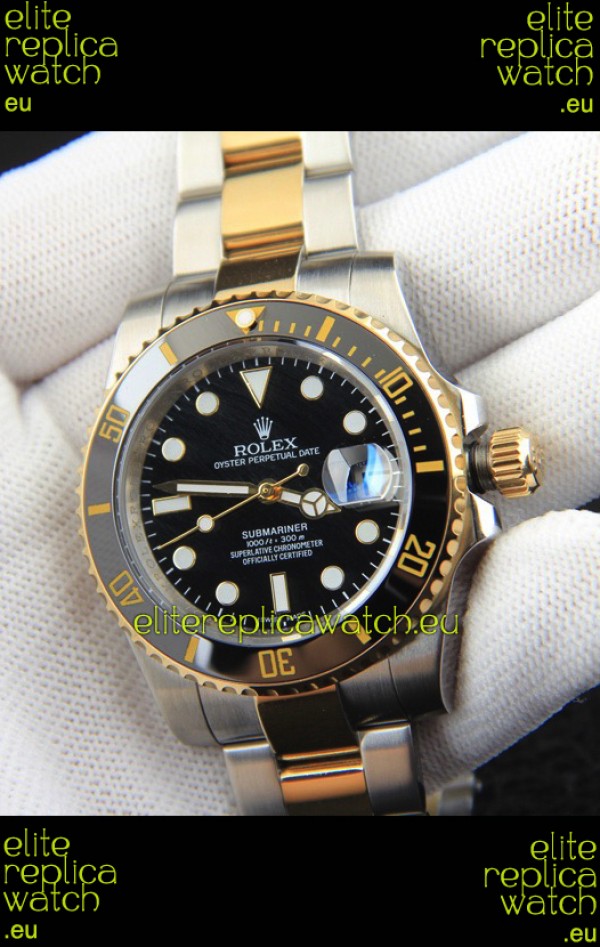Rolex Submariner Japanese Replica Watch in 2 Tone Yellow Gold Casing Black Dial