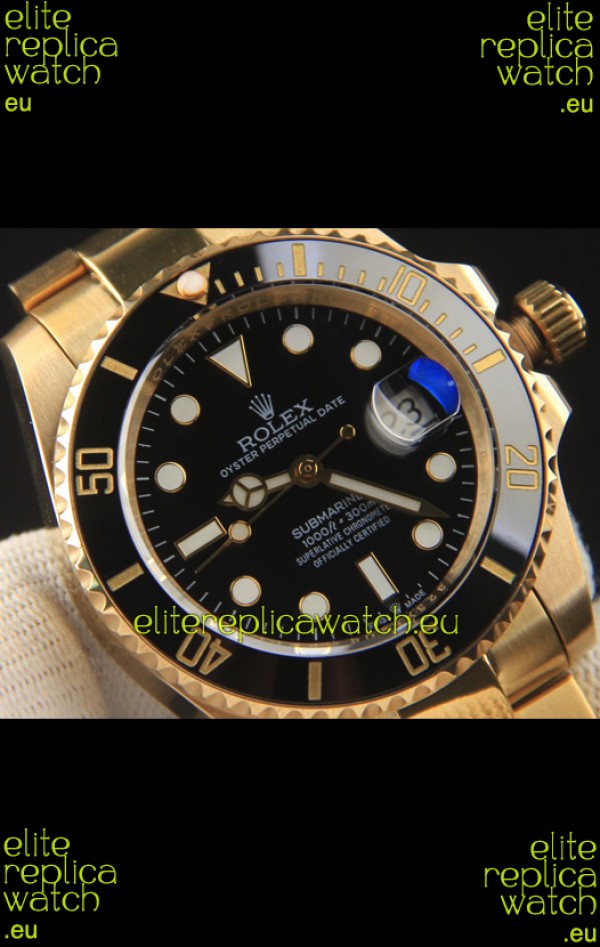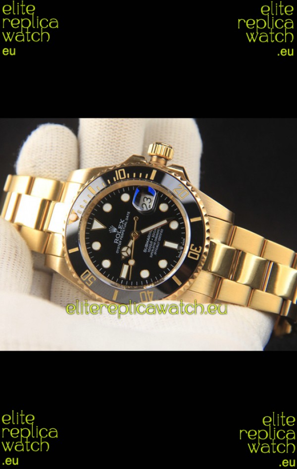 Rolex Submariner Japanese Replica Watch 904L Steel Yellow Gold - Ceramic Bezel in Black