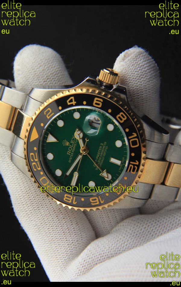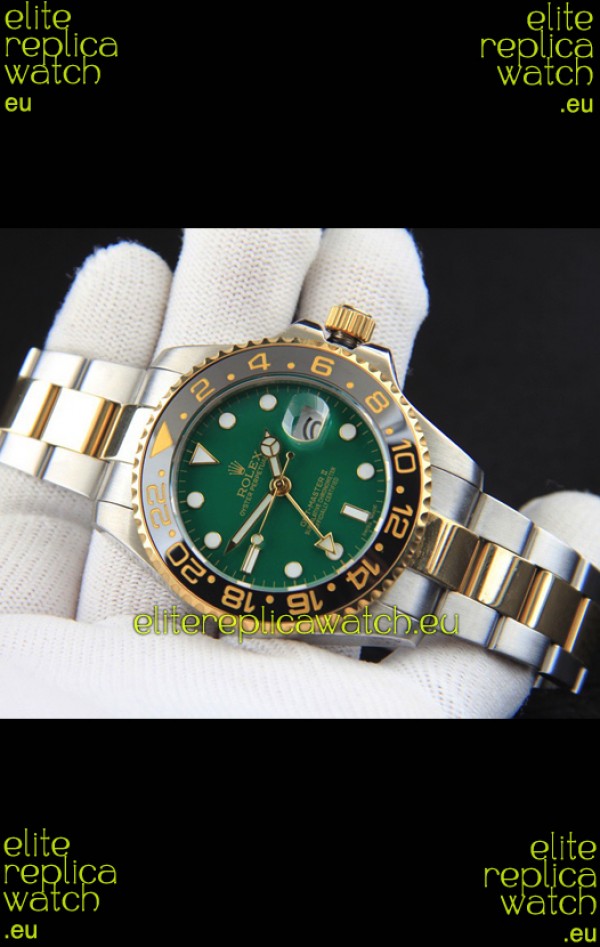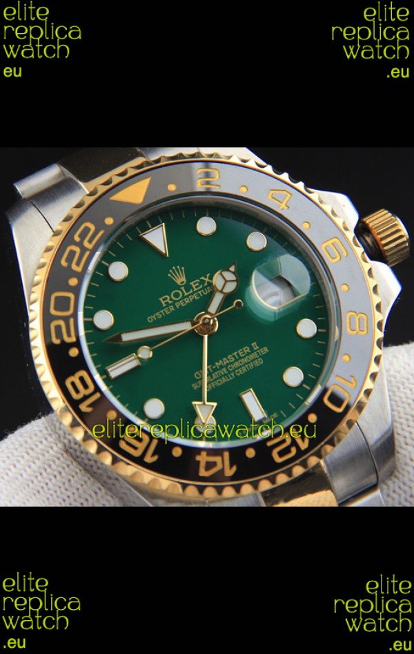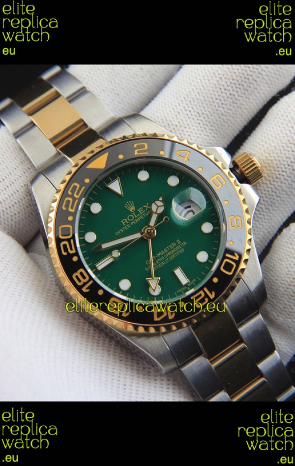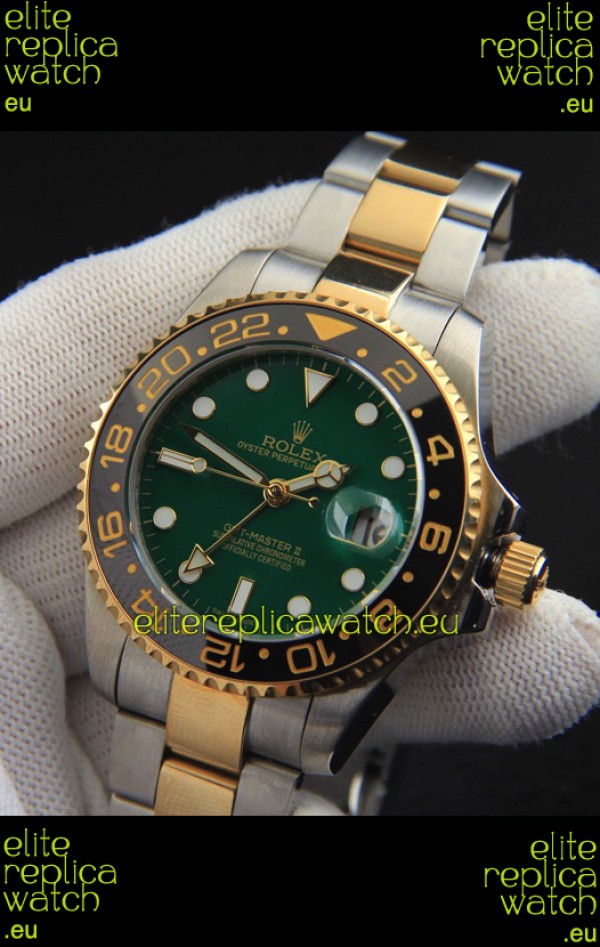 Rolex GMT Masters II Japanese Movement Replica Watch in Two Tone Green Dial