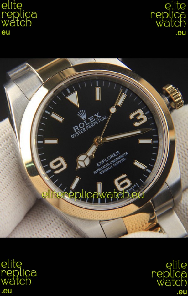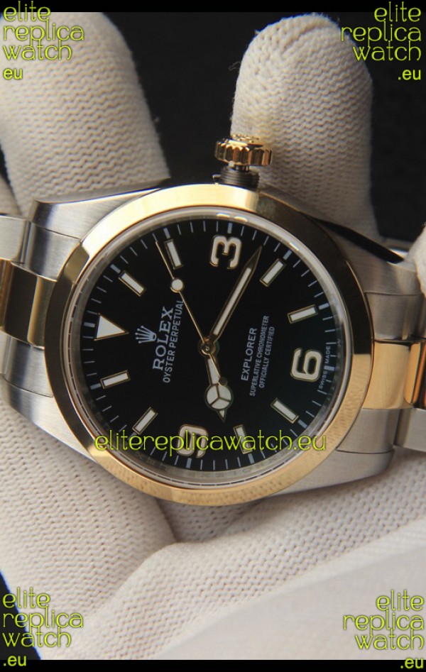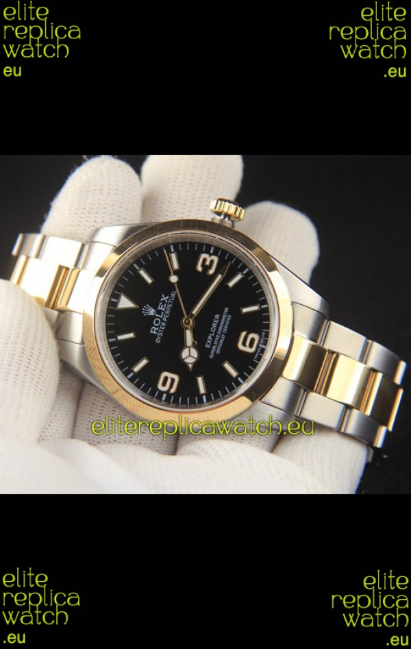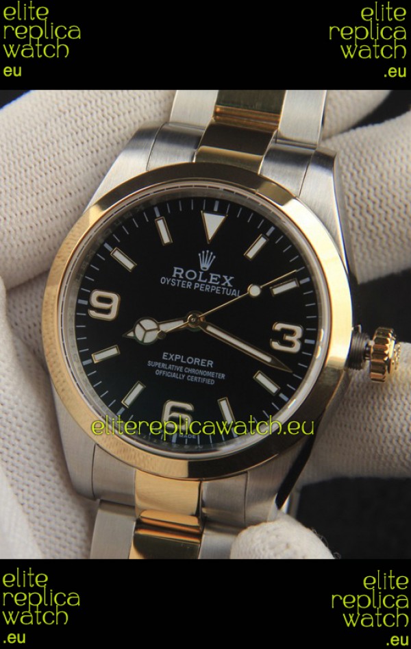 Rolex Explorer I Japanese Movement Replica Watch in Two Tone Black Dial 39MM