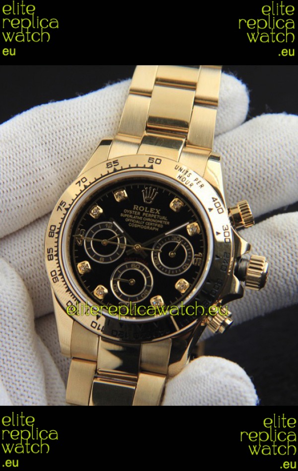 Rolex Daytona Japanese Movement Gold Casing Replica Watch in Black Dial