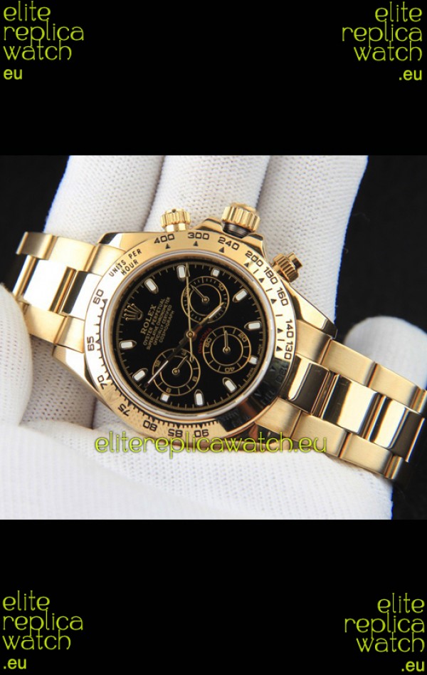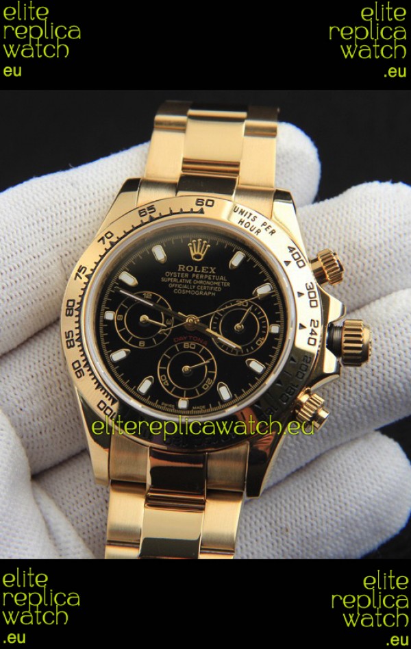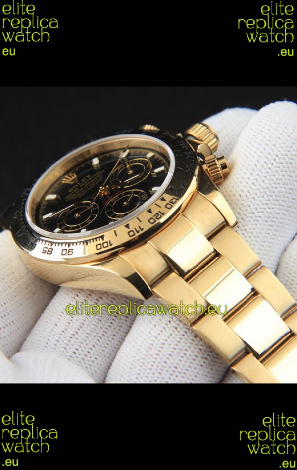 Rolex Daytona Japanese Movement Gold Casing Replica Watch in Black Dial