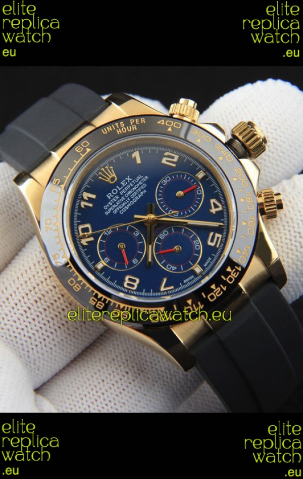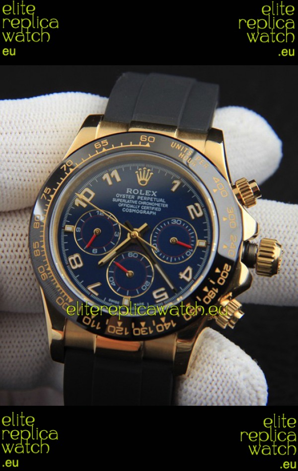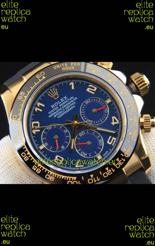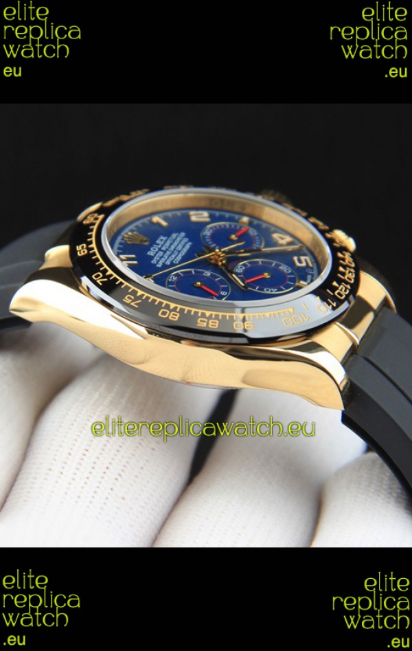 Rolex Daytona Japanese Movement Gold Casing Replica Watch in Blue Dial