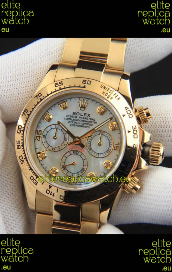 Rolex Daytona Japanese Movement Gold Casing Replica Watch in Mother of Pearl Dial