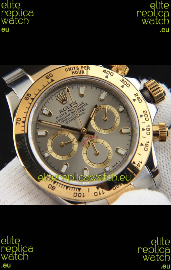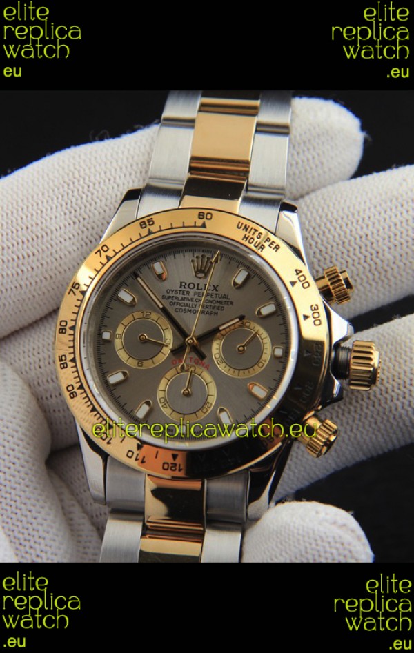 Rolex Daytona Japanese Movement Two Tone Gold Casing Watch in Grey Dial