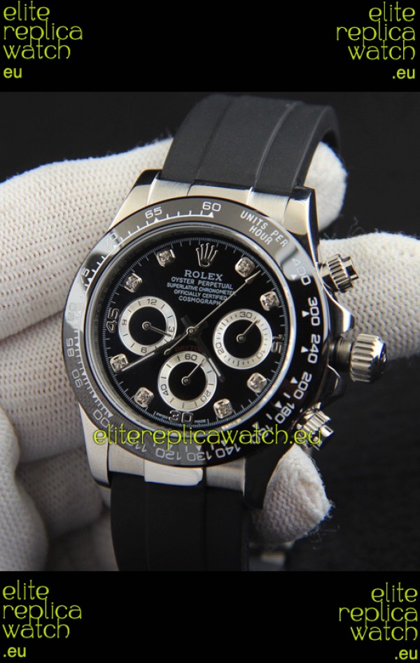 Rolex Daytona Japanese Movement Steel Casing Replica Watch in Black Dial