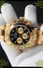 Rolex Daytona Japanese Movement Gold Casing Replica Watch in Black Dial