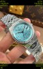 Ice Blue Honeycomb dial with Date Indicator. Diamonds Bezel