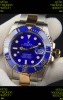 Rolex Submariner Japanese Replica Watch 904L 2 Tone Yellow Gold - Ceramic Bezel in Blue